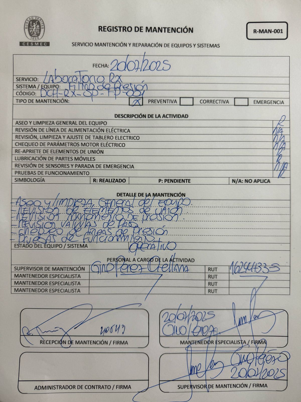 - Filtro de presión/ DCH-RX-SP-FP-002
