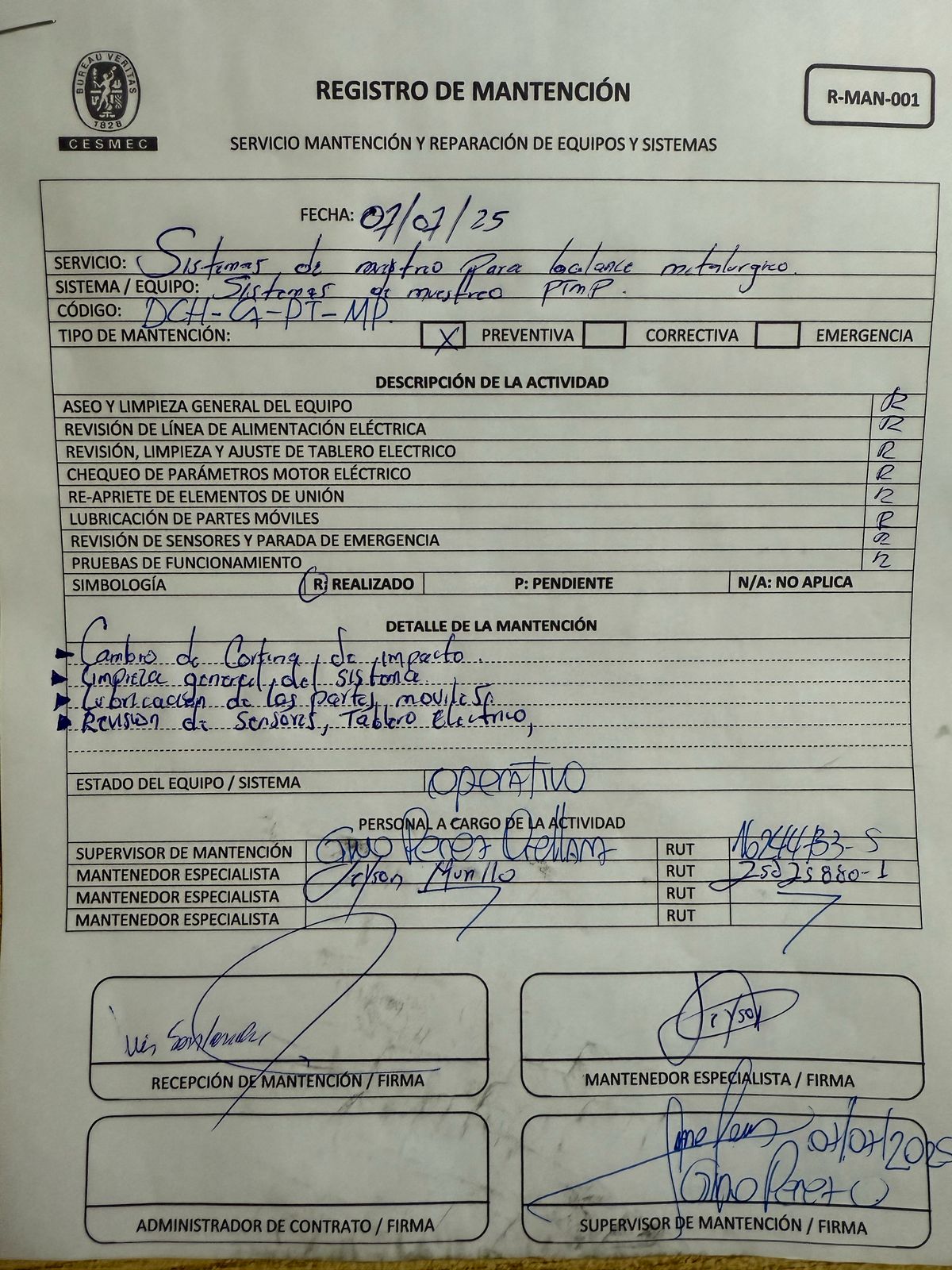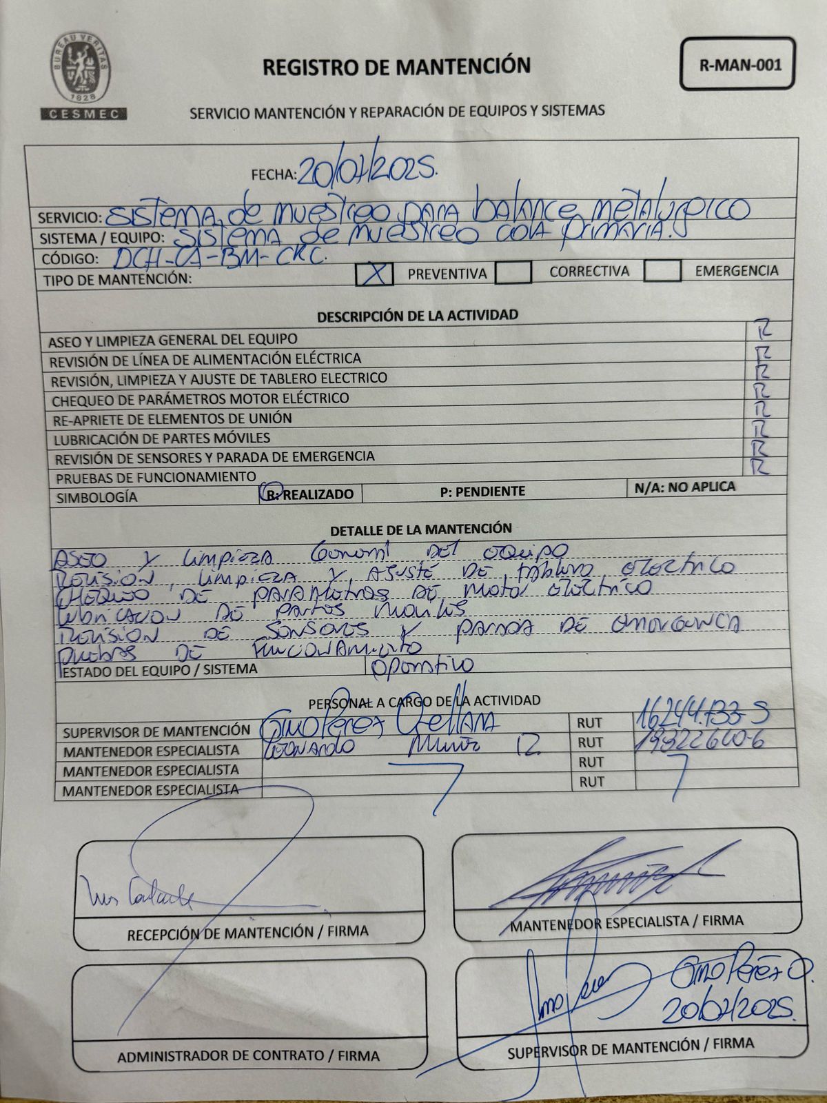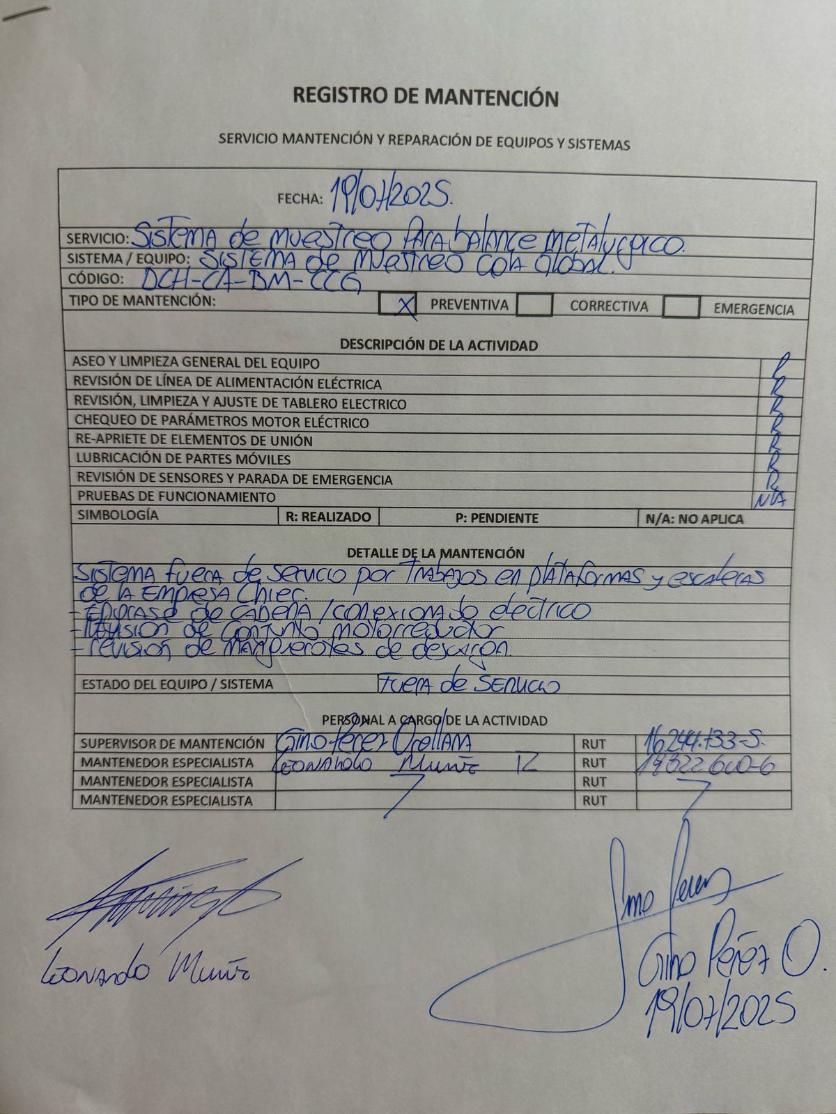 - Sistema de muestreo concentrado planta moly / DCH-CA-BM-CKC